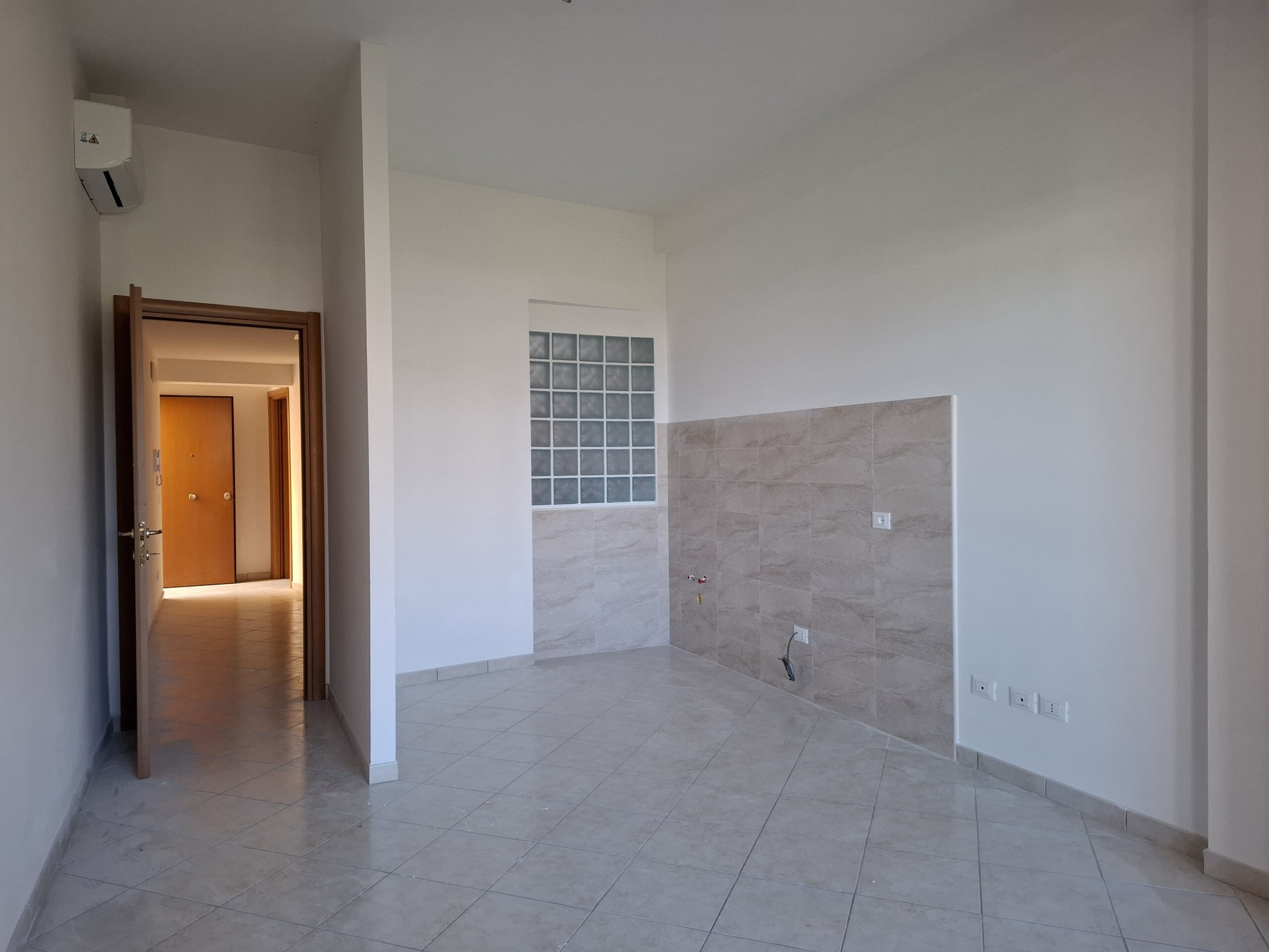 È composto da: ampio ingresso, bagno con doccia e una luminosa zona giorno, con angolo cottura e affaccio sul balcone. Attraverso una scala, che prende luce da una elegante riquadro in vetrocemento, si accede al soppalco abitabile, illuminato da una grande finestra.