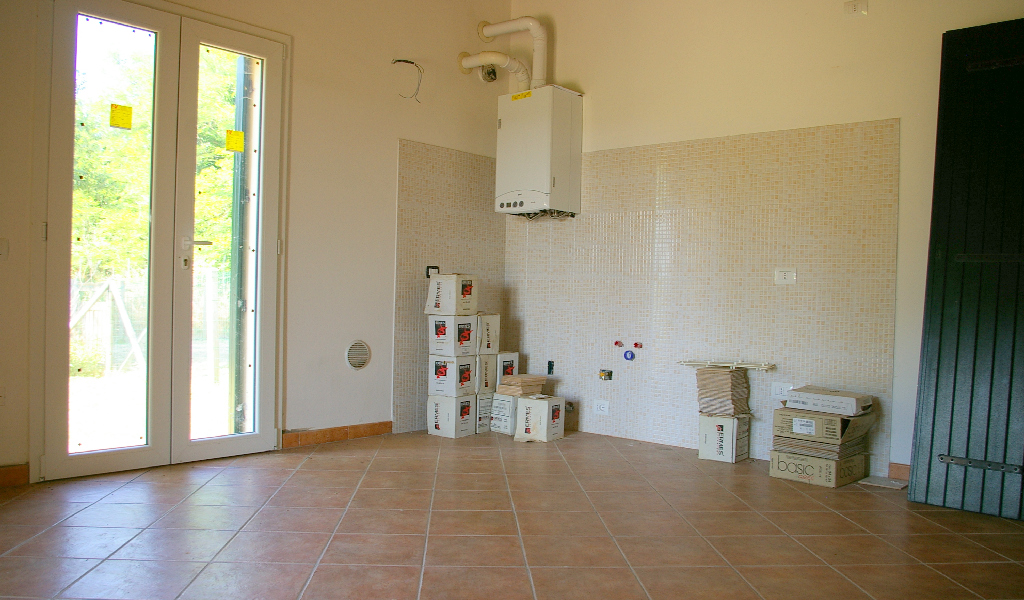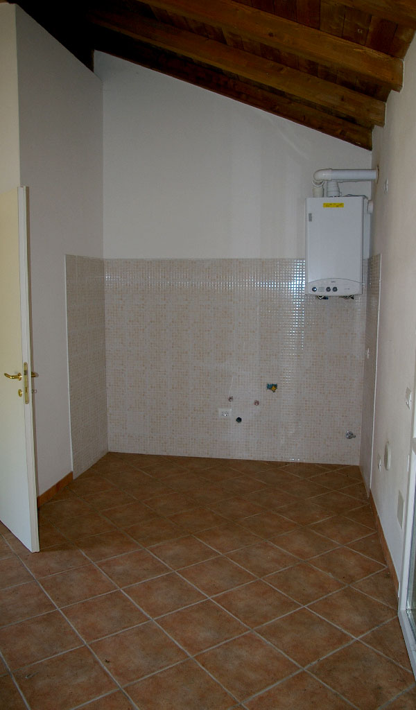 L’appartamento ha finiture di pregio che utilizzano materiali resistenti e naturali. I soffitti hanno travi di legno a vista, i pavimenti sono in ceramica nelle stanze e nei servizi.